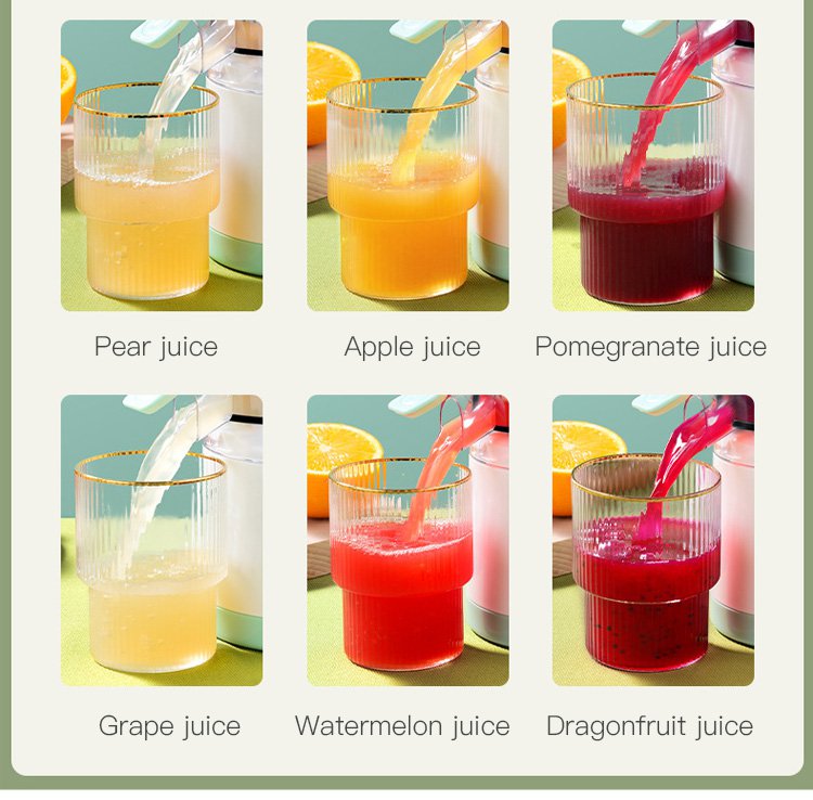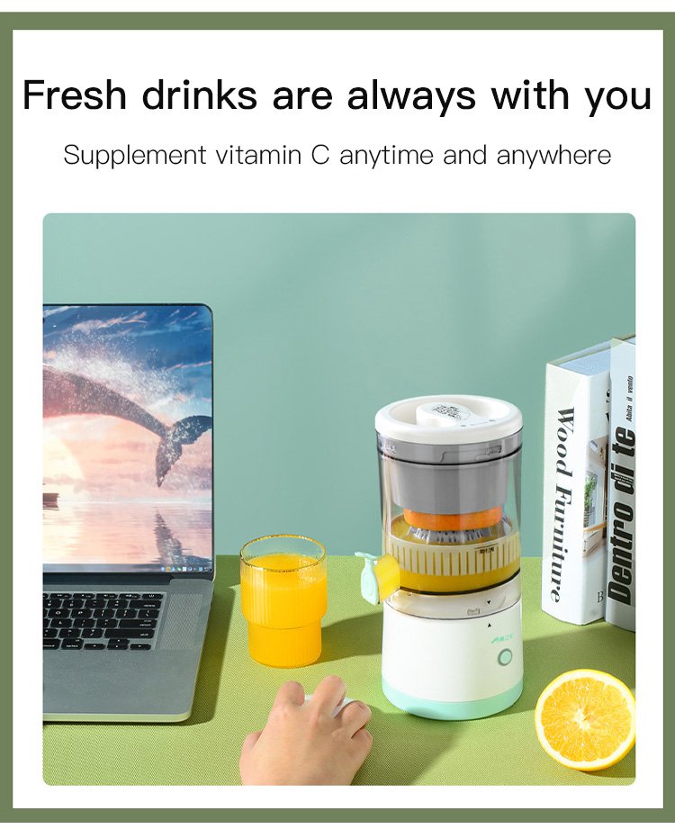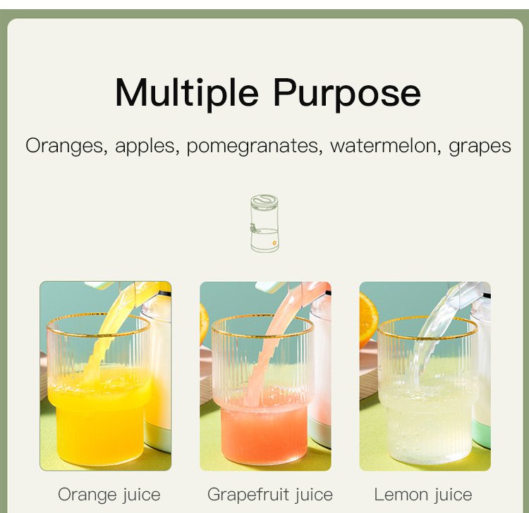 Wireless portable juicer,high juice yield, no residue, no waste.Fruit only needs to be cut in half,no need to peel, convenient and fast!!